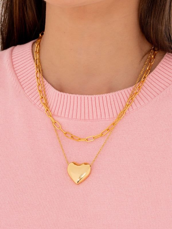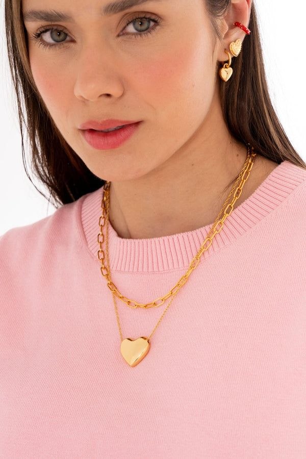 Set Collar Cadena + Aretes Corazón Liso By Jose y Cami